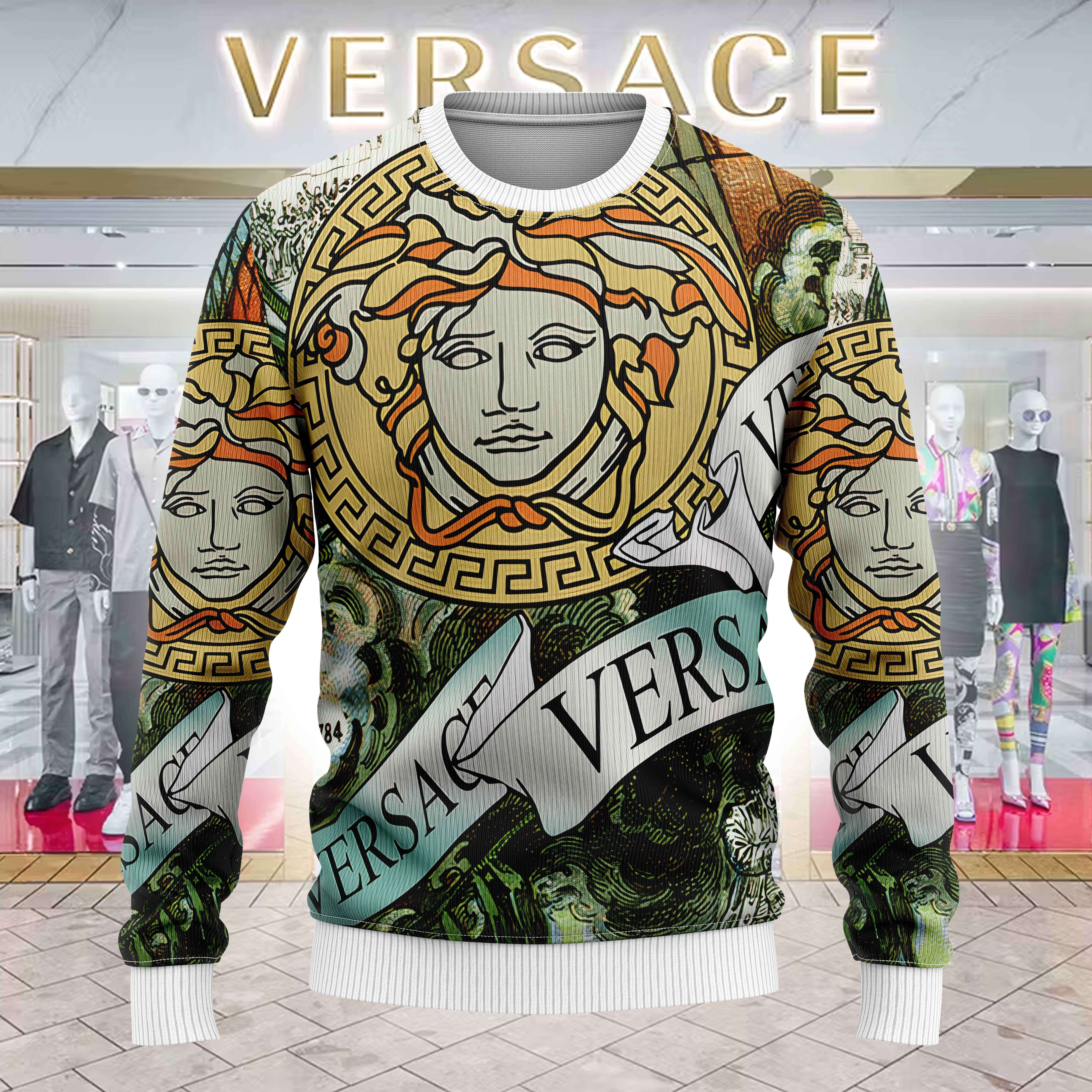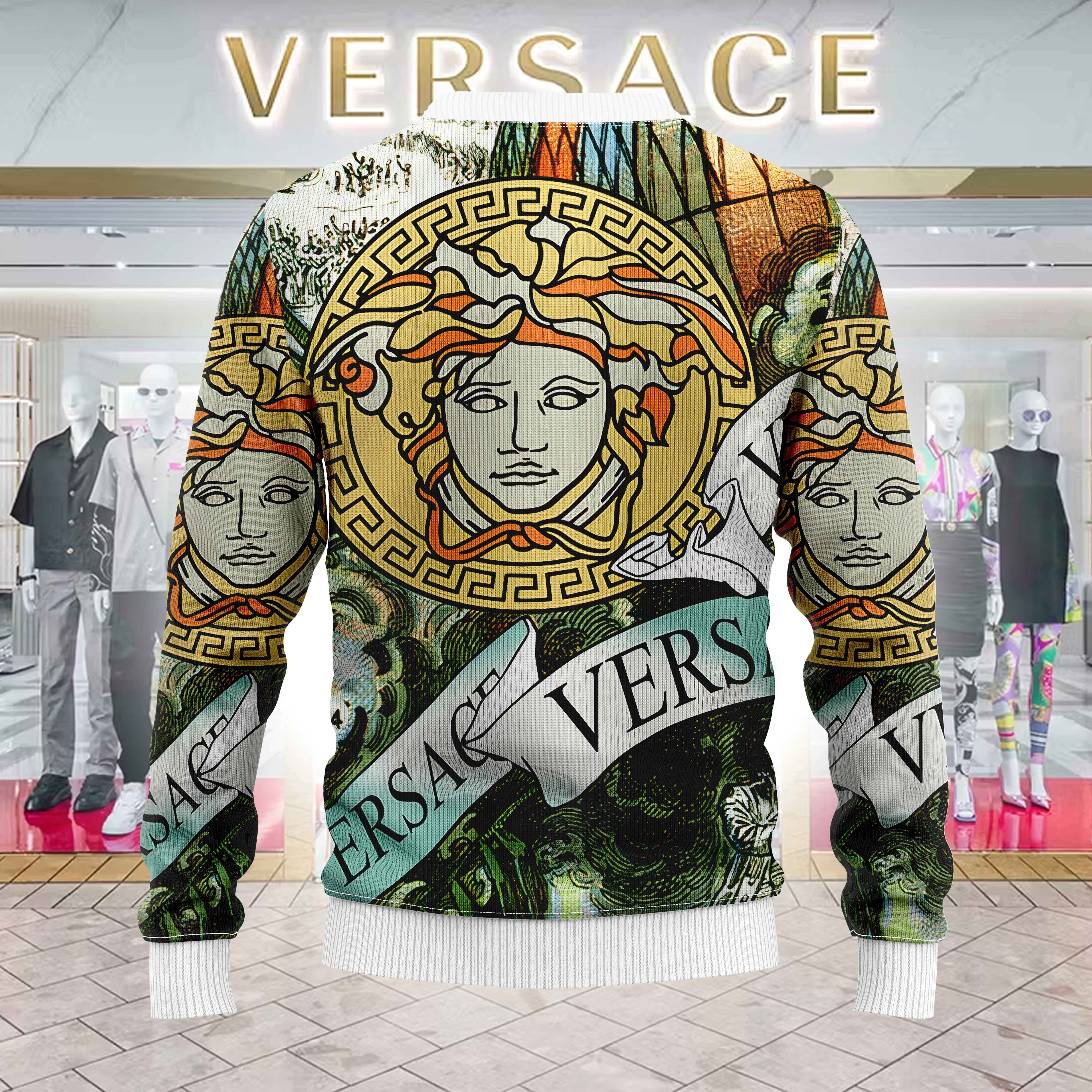 • Each all-over printed sweater is custom printed, cut, and sewn just for you when you place your order – there may be small differences in the design on the seams and/or arms due to the custom nature of the production process!